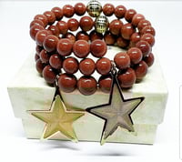 Beautifully handcrafted Goldstone beaded bracelet with star charms.